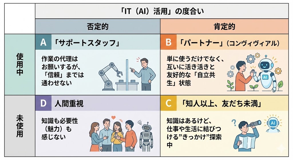 ■B:「パートナー」タイプ(使用中 × 肯定的)
