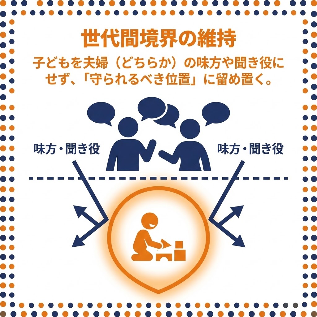子どもを夫婦の味方や聞き役にせず、子どもを「守られるべき位置」に留め置く 。