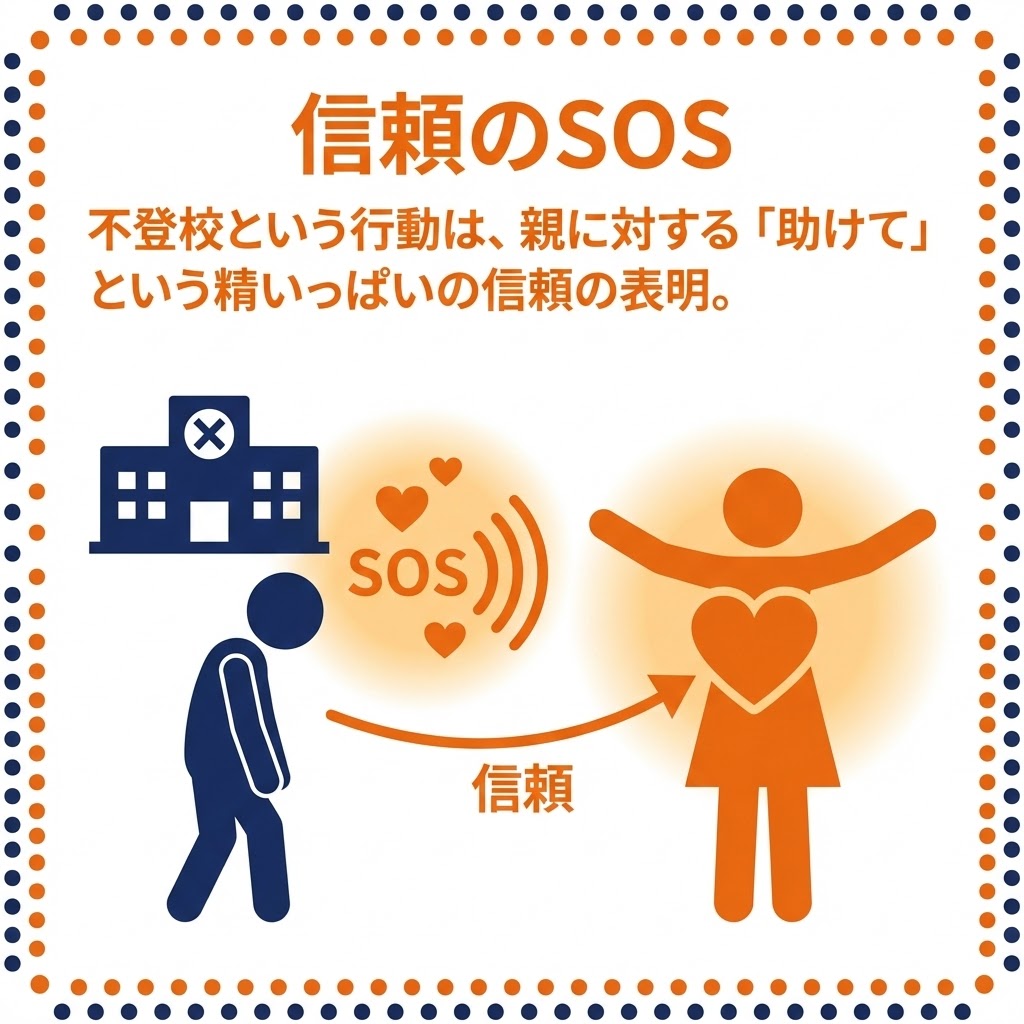 不登校という行動を、親に対する「助けて」という精いっぱいの信頼の表明として肯定的に捉える 。言葉にできない苦しみを行動で示せたことを、健全な自己発信の第一歩として解釈する 。